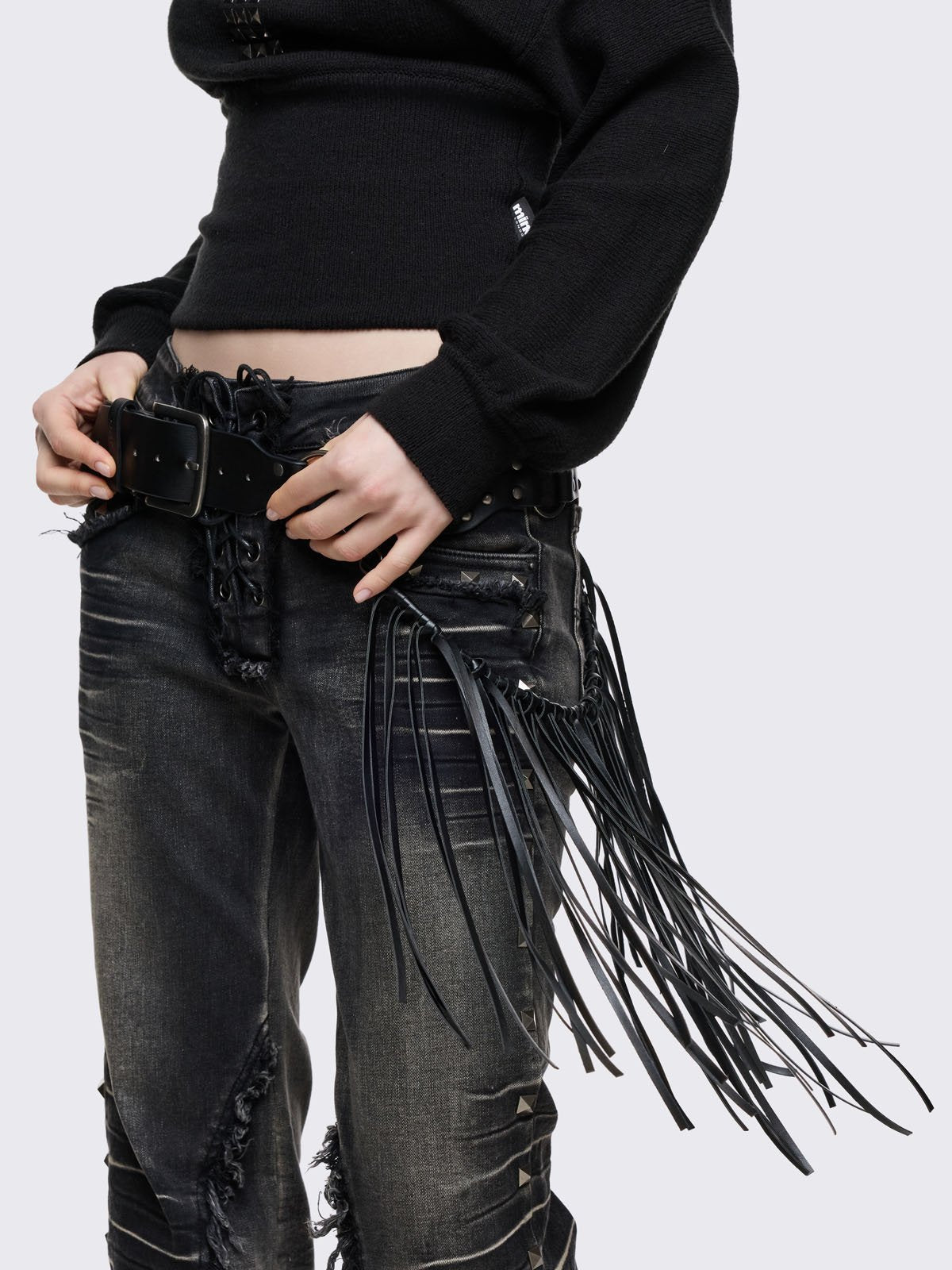 • Black vegan leather concho belt