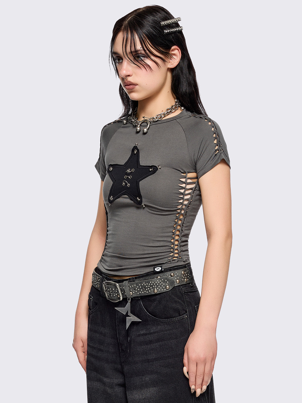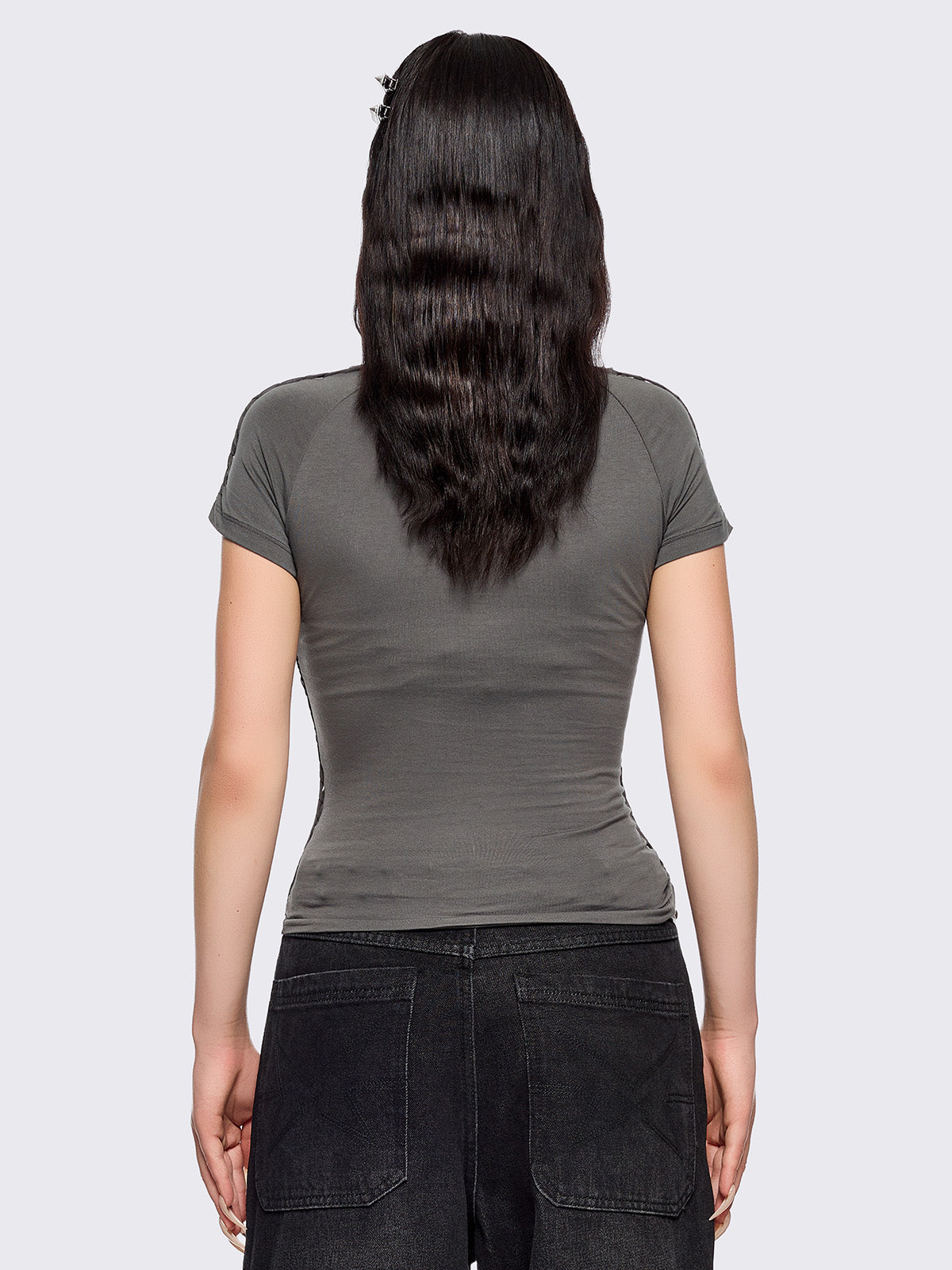 Wrap a measuring tape around the fullest part of your hip, making sure to keep the tape parallel to the ground. This is your hip measurement.