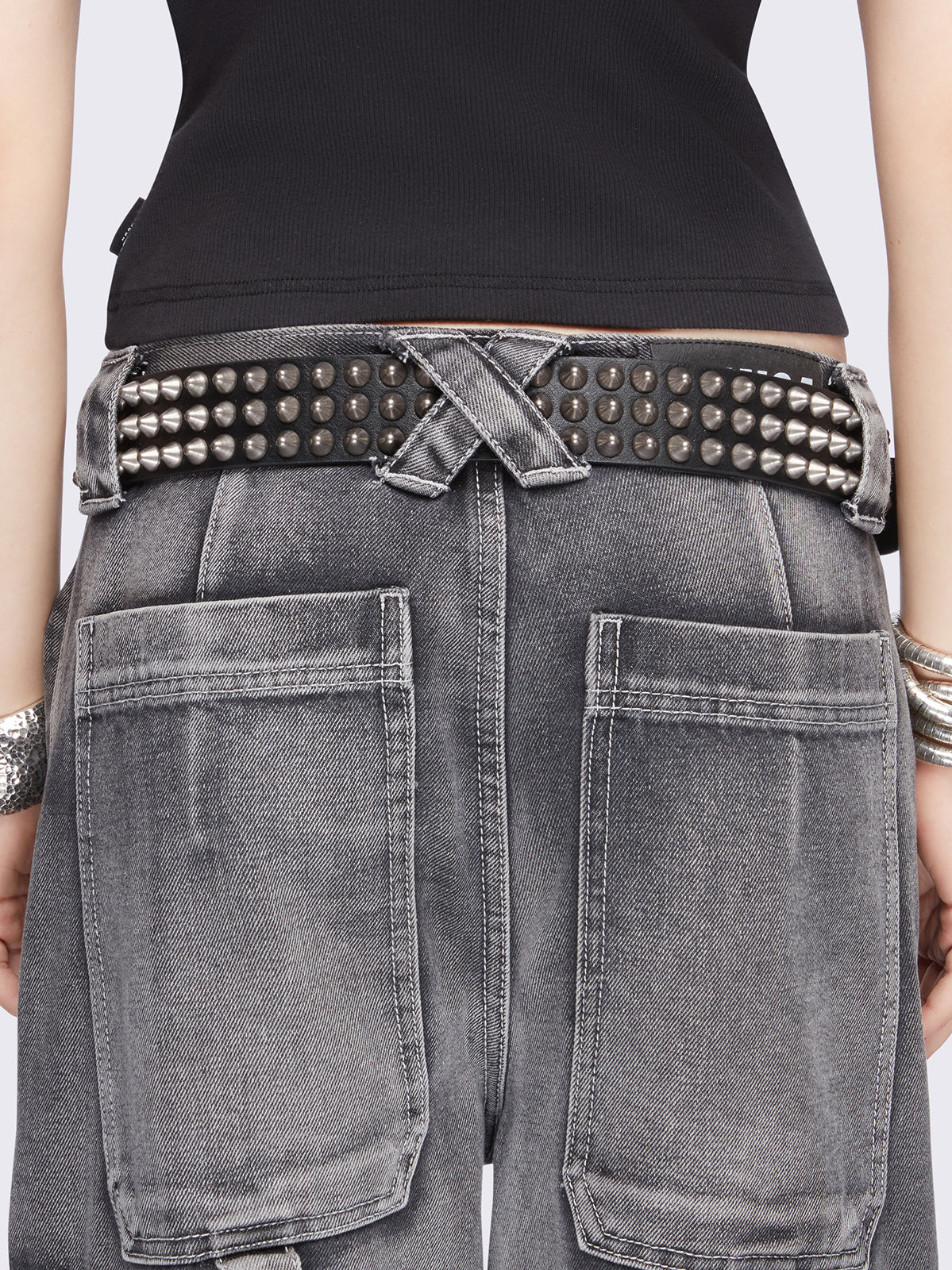 color of the metal is more of a dull gunmetal versus the bright silver pictured online. otherwise cool belt and appreciate the dust bag it came with